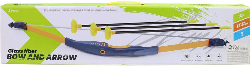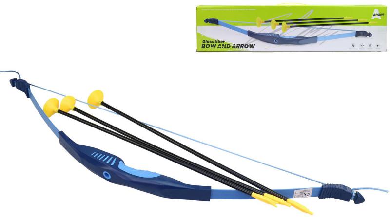 Luk modrý 70cm + 3 šípy na přísavku dětský plastový herní set