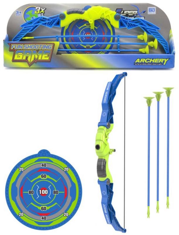 Plastový dětský lukostřelecký set pro malé sportovce. Obsahuje luk, 3 soft bezpečné šípy na přísavku a terč k zavěšení.