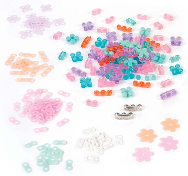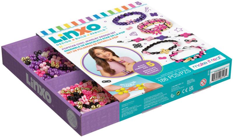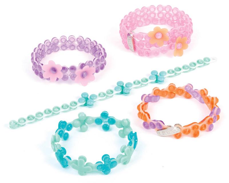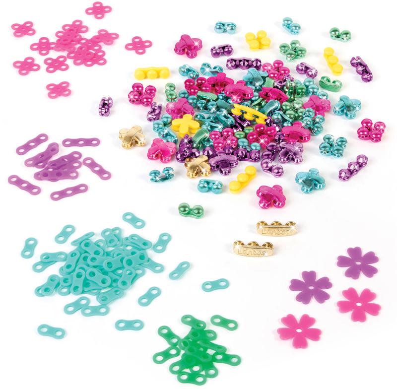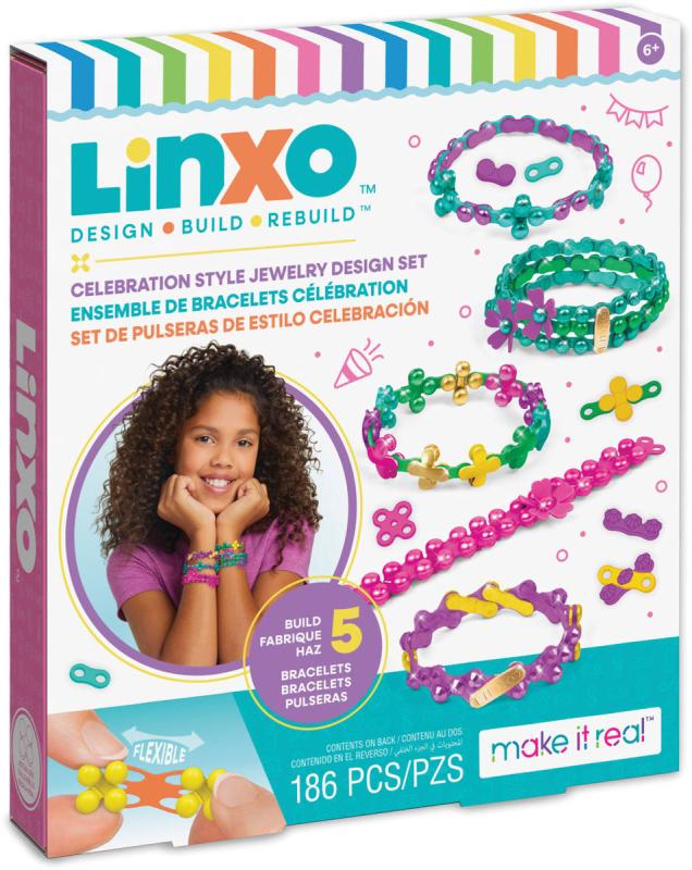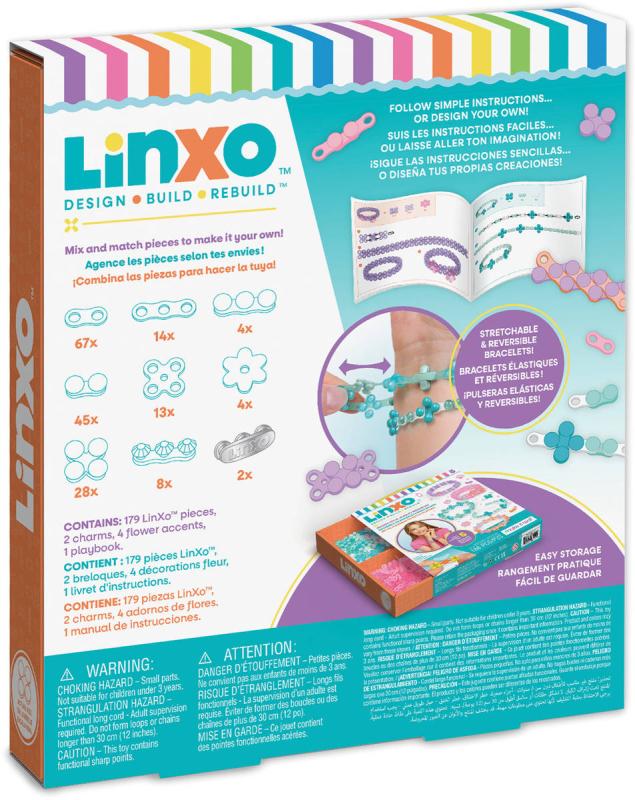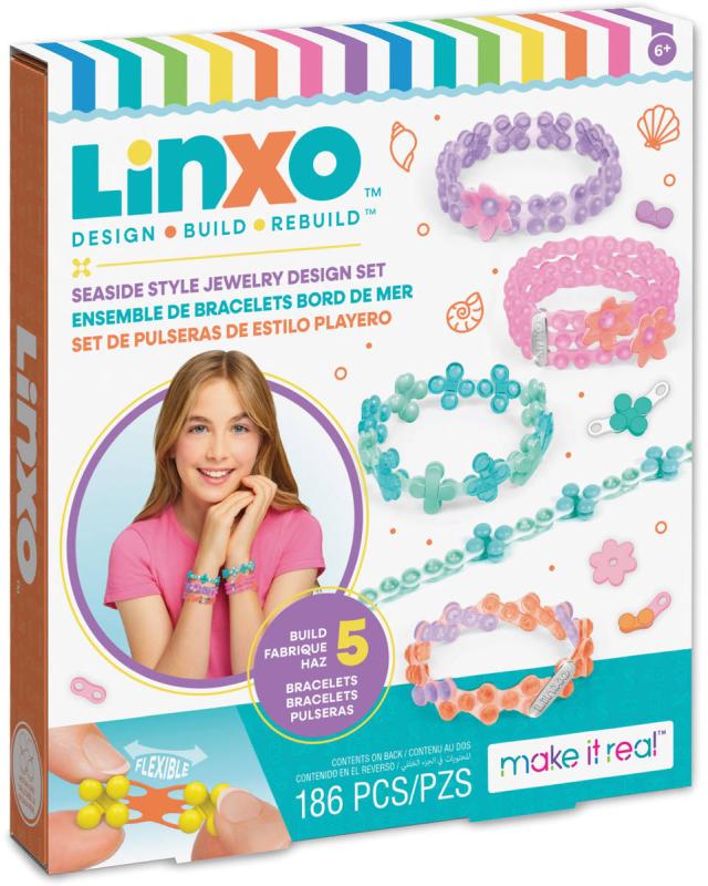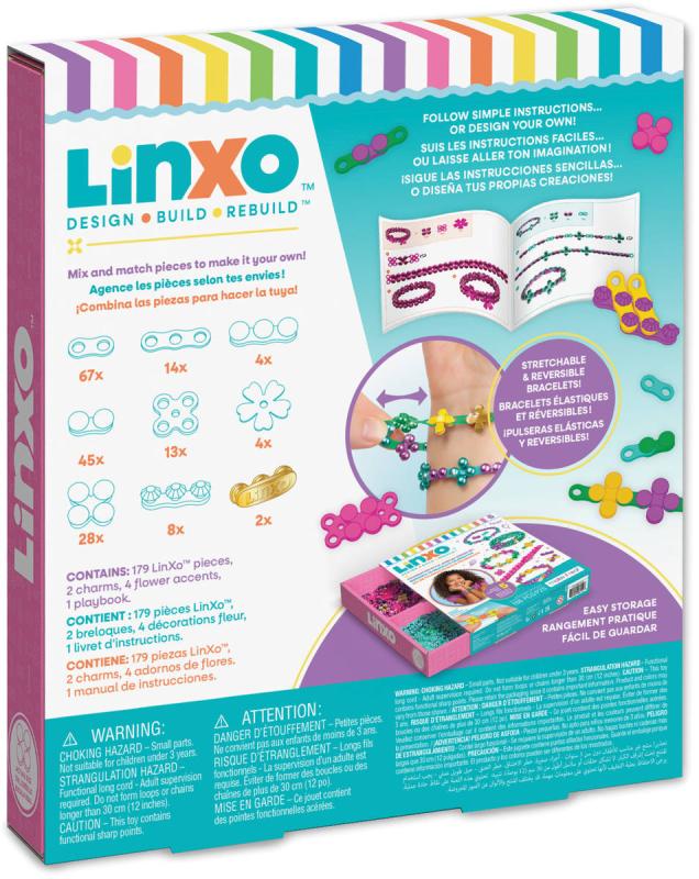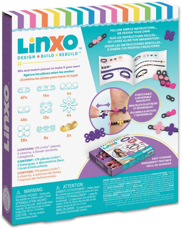Vytvoř pět flexibilních náramků LinXo a pak je znovu rozebírej a přestavuj pořád dokola! Tyto sady obsahují vše, co děti potřebují k sestavení vlastních šperků ve třech různých stylech – stačí propojit jednotlivé dílky, ozdobit je květinovými detaily a pak je stylově nosit.