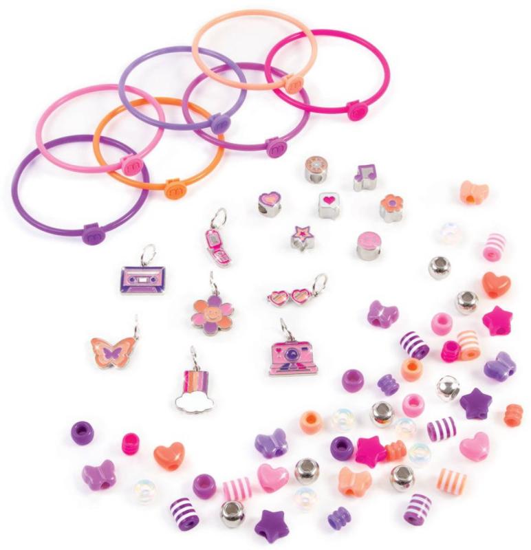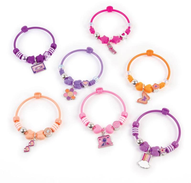 Vytvořte si 7 náramků s módními korálky a kovovými přívěsky. Náramky se snadno otevírají a zavírají, což umožňuje rychlou přeměnu náramku dle nálady. Zábavné retro přívěšky přinášejí mamince nostalgické dny a mladší generaci ten správný nádech trendů 80. a 90. let! Tato DIY sada je skvělým dárkem k narozeninám, k svátku nebo jen tak! Ideální pro děti od 6 let, které chtějí prozkoumat svou kreativitu a vyjádřit svůj styl.