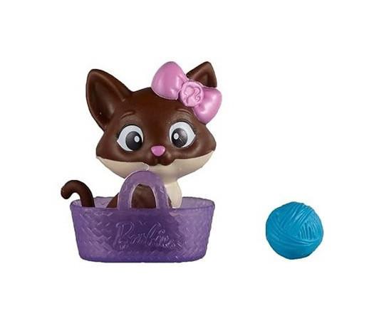 Mattel Barbie figurky mazlíčků 8x11,5 cm, balení obsahuje úžasnou figurku kočičky v košíčku a klubíčko, krásná originální zvířátka, lze použít jako doplněk pro panenky Barbie nebo sbírat jako samostatné figurky.
