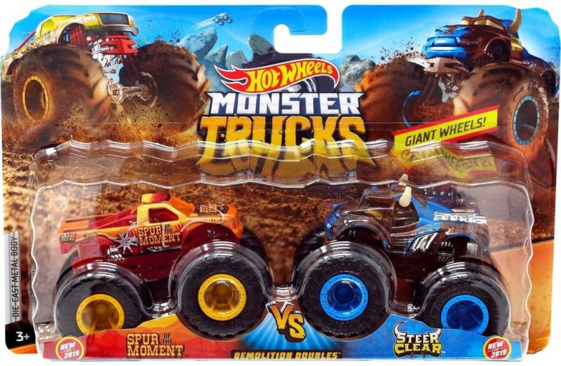 Monster trucky od Hot Wheels jsou ta nejobávanější auta ze všech! Sestrojeny jsou tak, aby soutěžily mezi sebou. Trucky se utkávají v přímých soubojích, kde maximálně využijí svá OBŘÍ kola! Užij si