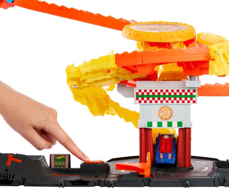 Postavte se hladové kobře, která se vplížila do pizzerie, a zachraňte Hot Wheels City stejně jako v seriálu Let`s Race od Netflixu! Najeďte kobře na ocas a pusťte ji, abyste zjistili, kterou ze tří náhodných cest se auto vydá. Prožene se kobří tlamou a skončí v popelnici? Možná ho čeká nešťastná jízda, která skončí v tlamě tvora. Nebo možná vyšle pizzu do tváře kobry a porazí ji! Sada obsahuje parádní detaily dráhy, které inspirují k vyprávění příběhů a lze ji připojit k dalším sadám Hot Wheels City. Každá se prodává samostatně. Součástí balení je jedno autíčko Hot Wheels. Barvy a provedení dekorací se mohou lišit.Rozměry balení (š v h): 40,5 x 25,5 x 10cm