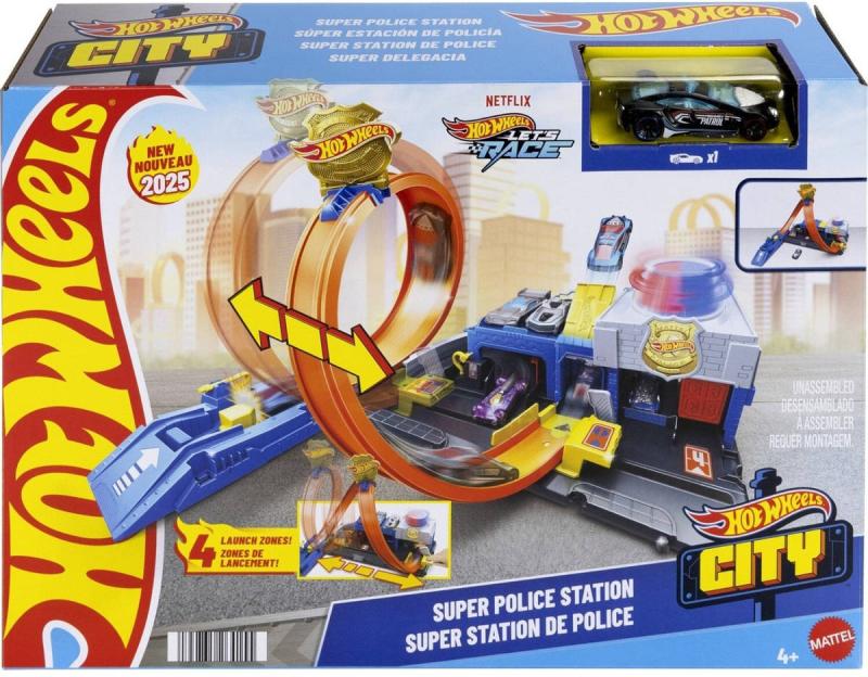 Závoďte přes policejní stanici ve městě Hot Wheels, která je vybavena nastavitelnou smyčkou pro různé způsoby hraní. Děti ji mohou propojit s dalšími sety Hot Wheels a sestavit si tak jedinečné městské dobrodružství.