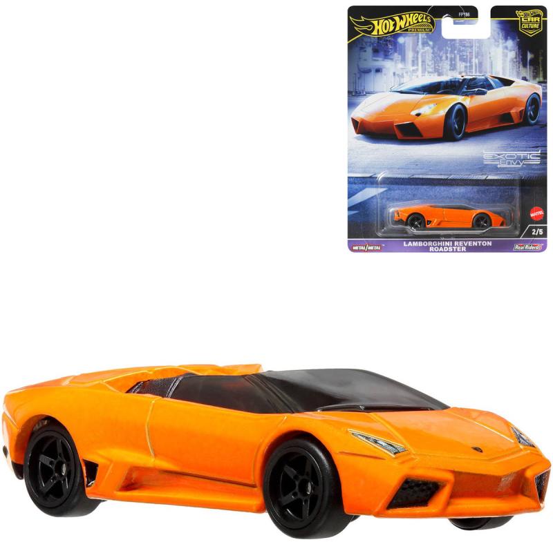 Mattel Hot Wheels Car Culture kovové sběratelské prémiové auto angličák Lamborghini Reventon Roadster, 1:64Kolekce prémiových aut Hot Wheels Velikáni obsahuje prémiový výběr angličáků v měřítku 1:64, který si zamilují sběratelé i nováčci ve světě Hot Wheels. Každý model se chlubí realistickými detaily, úžasným designem a typickými Hot Wheels koly, která oceňují děti i sběratelé. Fanoušci aut tuhle sadu musí mít! Každé se prodává samostatně dle aktuální nabídky. Nelze kombinovat s některými sadami Hot Wheels. Barvy a vzhled výrobku se mohou lišit.