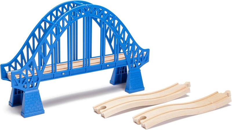 Dřevěný dlouhý obloukový most je pěkný doplněk ke kterékoliv vláčkodráze. Děti milují vysoké obloukové mosty, které nejen že umožní překonání různých překážek, ale i samotná jízda po něm nabízí nezapomenutelný zážitek z dlouhých cest po železnicích. Tento most zajistí atraktivitu vaší vláčkodráze. Součástí balení jsou také 2 nájezdové koleje o délce cca 24cm.