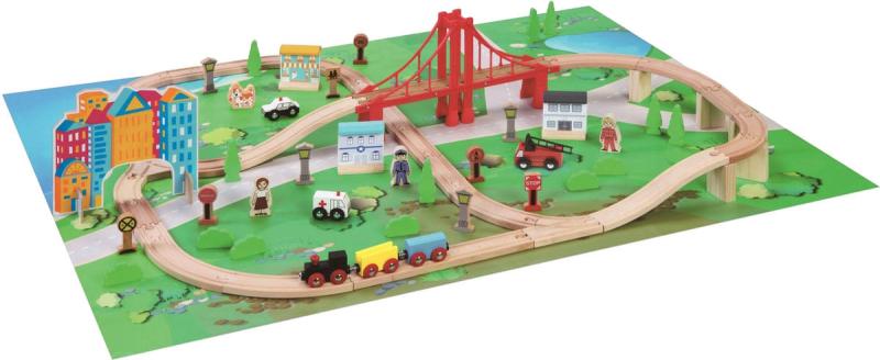 MAXIM DŘEVO Vláčkodráha přímořské město 80 dílků (dřevěná hračka)