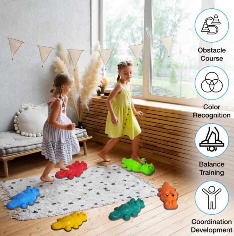 ***Sada balančních kamenů Krokodýli přináší dětem zábavný a originální způsob, jak rozvíjet motoriku, rovnováhu a koordinaci pohybů. Barevní krokodýli mají protiskluzný povrch, stabilní tvar a díky své délce poskytují dětem více prostoru pro našlapování i balanční hry.