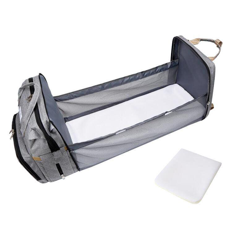 Batoh se skládá ze dvou velkých přihrádek, přičemž jednu z nich jde pomocí rozepnutí zipu proměnit na pohodlnou přebalovací podložku s vložkou ze síťoviny. Můžete tak kdykoliv a kdekoliv své miminko přebalit. Druhá přihrádka slouží jako klasická kapsa batohu - můžete v ní přenášet plenky, plenkové kalhotky, vlhčené ubrousky, dětskou výživu, láhev s vodou nebo náhradní oblečení. V menší přední kapse na zip jsou 3 přihrádky s termoizolační stélkou, do kterých můžete vložit například dětské lahvičky. Po stranách batohu se nachází ještě dvě přihrádky, vhodné na láhev nebo deštník. V jedné z přihrádek je otvor na zip, který když rozepnete, můžete vytahovat vlhčené kapesníčky přímo z kapsičky. Součástí batohu jsou i dva traky s karabinami, díky kterým batoh jednoduše připevníte na madlo nebo konstrukci kočárku.