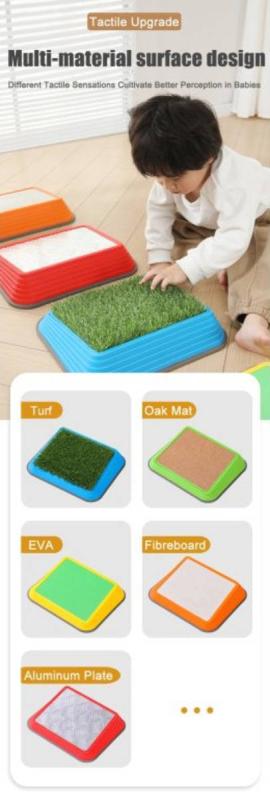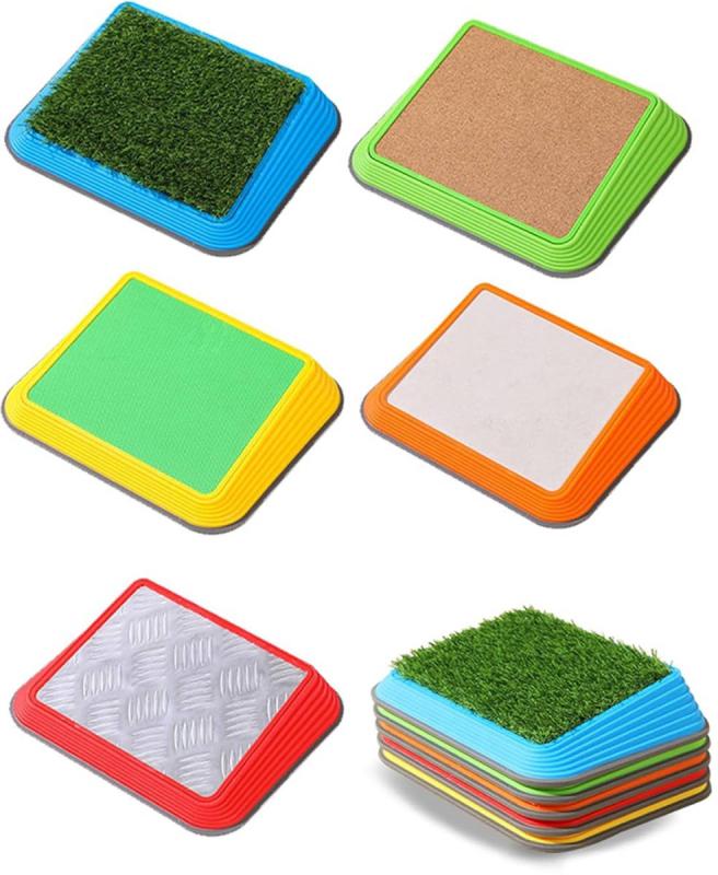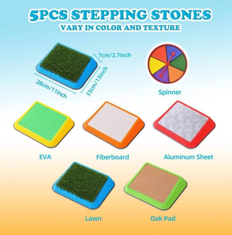 Praktické balanční nášlapy s unikátními povrchy jsou ideální pomůckou pro rozvoj motoriky, rovnováhy a senzorického vnímání u dětí. Každý nášlap napodobuje jiný materiál, což podporuje stimulaci chodidel, jistotu v kroku a zábavnou formu pohybového tréninku.