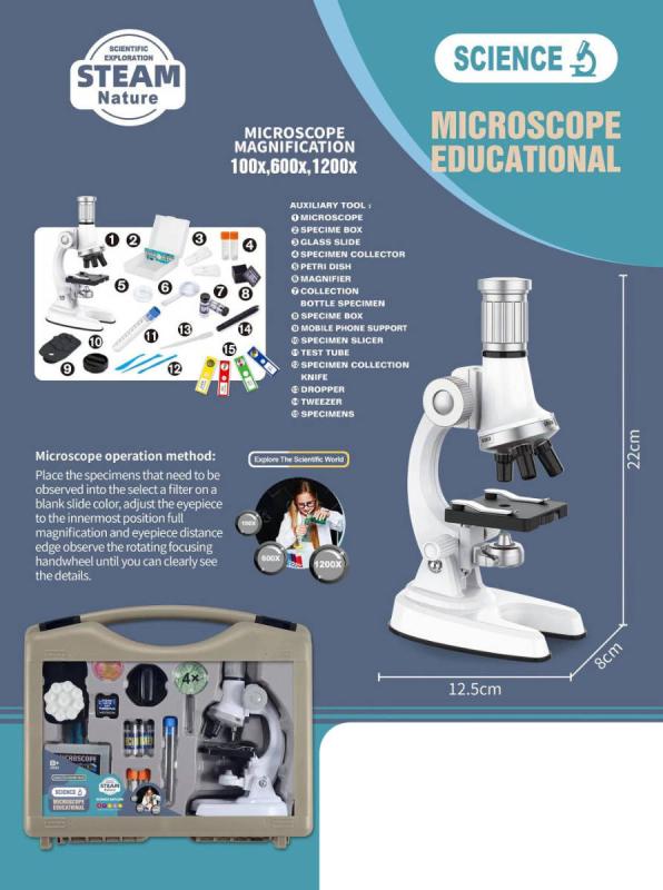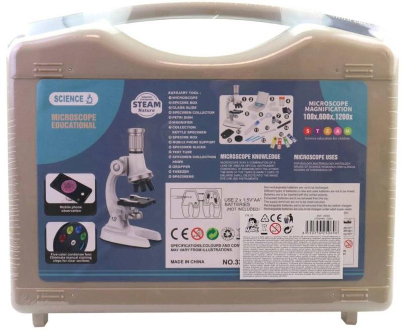 Mikroskop dětský velký zvětšení až 1200x v kufříku s příslušenstvím na baterie