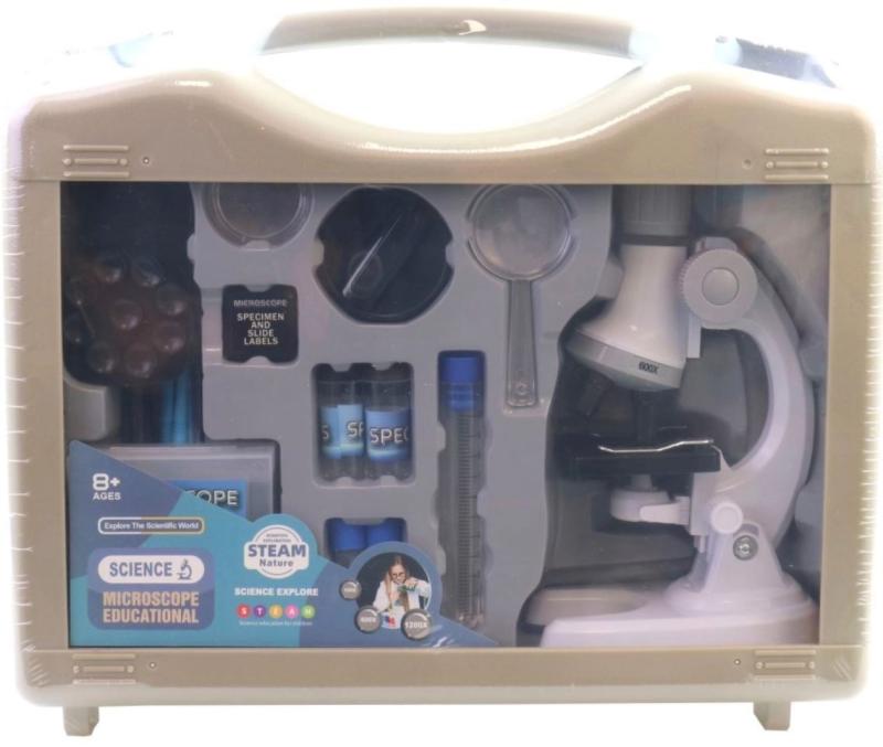 Tento dětský mikroskop je navržen pro první pokusy a zkoumání mikrosvěta. Díky odolnému plastovému tělu a jednoduchému ovládání je vhodný pro školní i domácí experimenty. Praktický box usnadňuje skladování i přenášení.