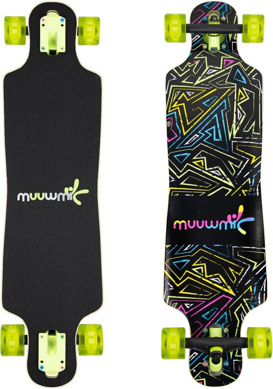 Muuwmi Longboard Compact ABEC 7 Neon se svítícími kolečky