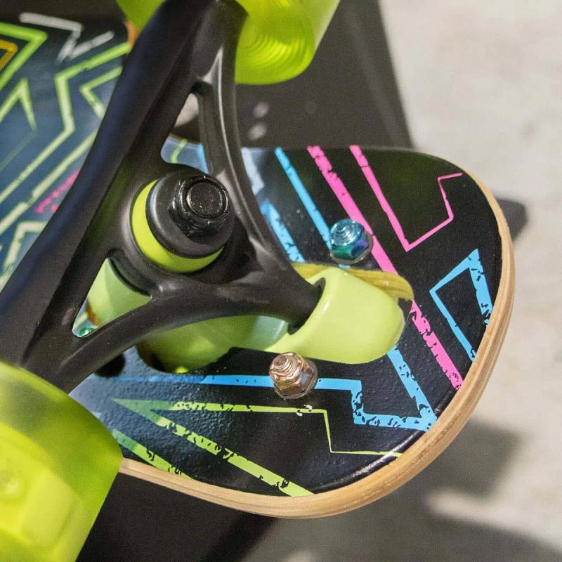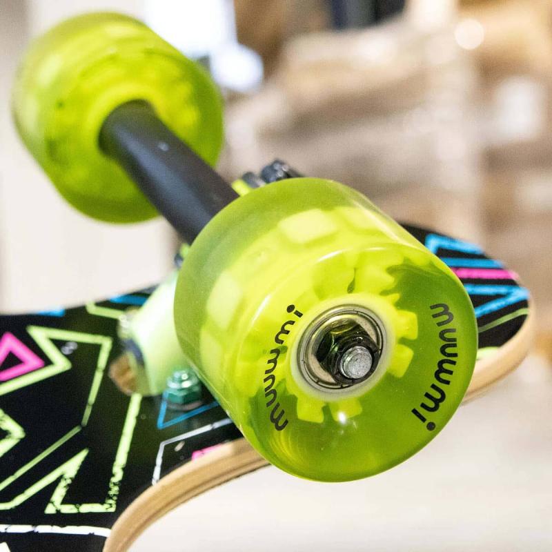 Muuwmi Longboard Compact ABEC 7 Neon, skateboard se svítícími kolečky (svítící ve tmě, fosforeskuje).