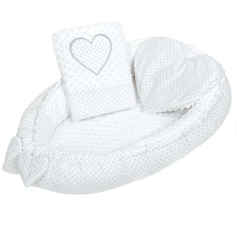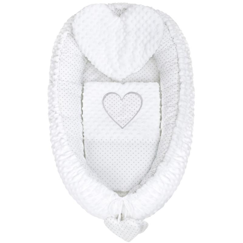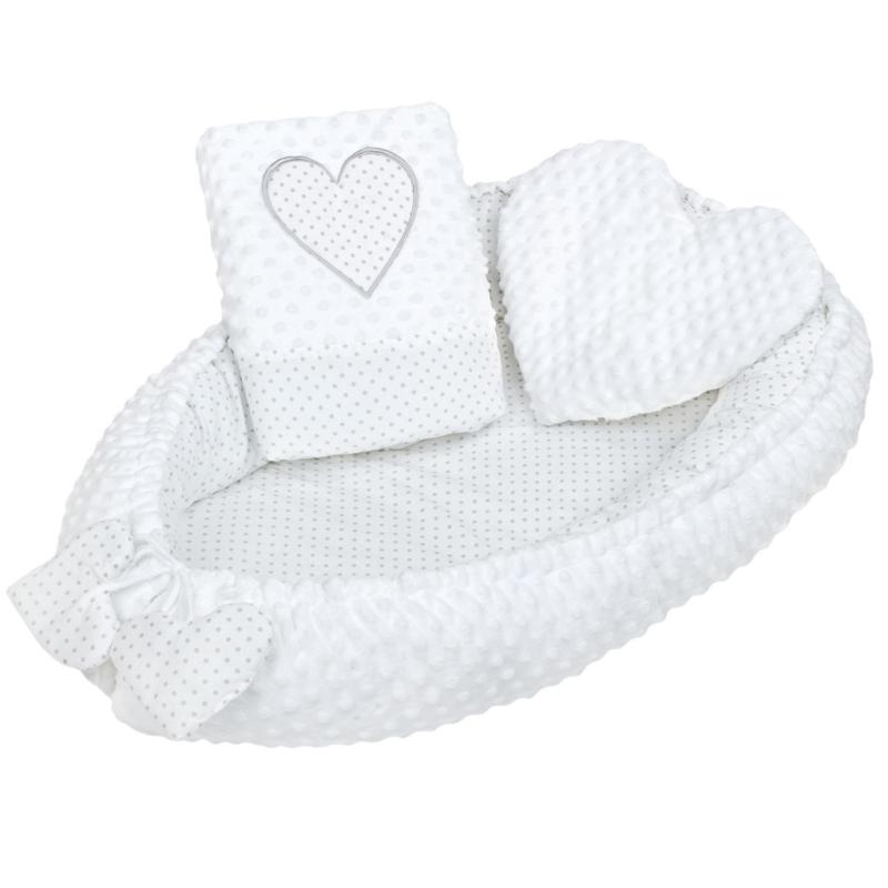 NEW BABY Luxusní hnízdečko s polštářkem a peřinkou z Minky Srdíčko