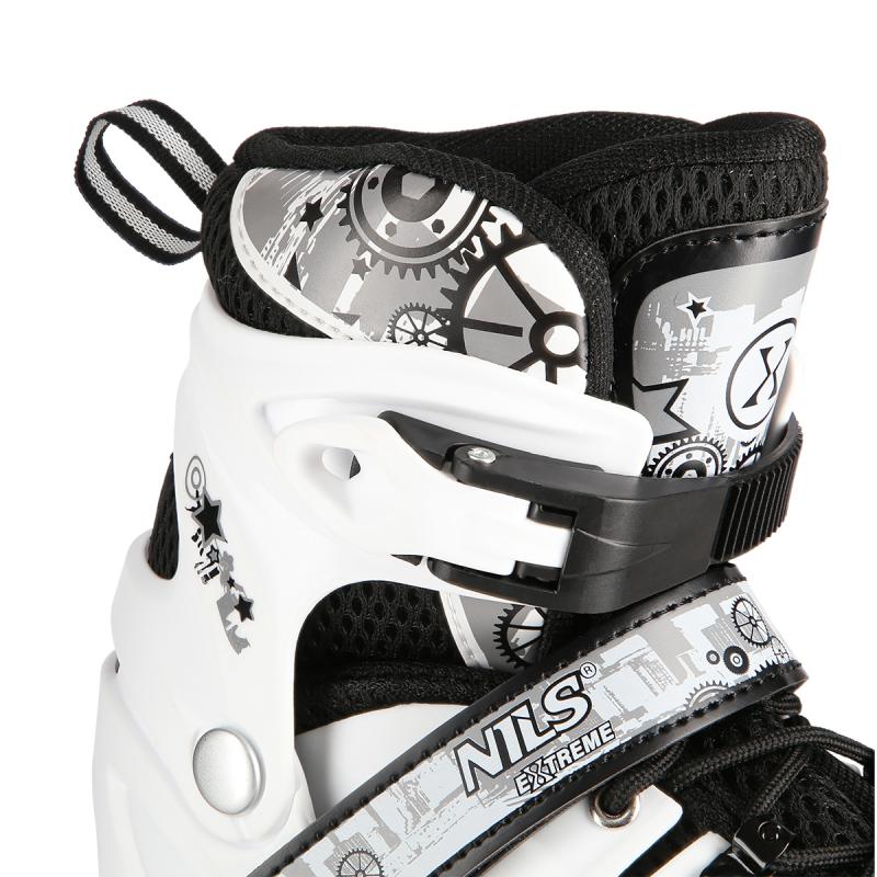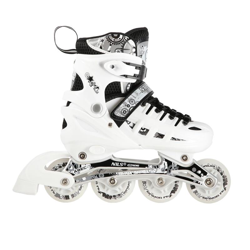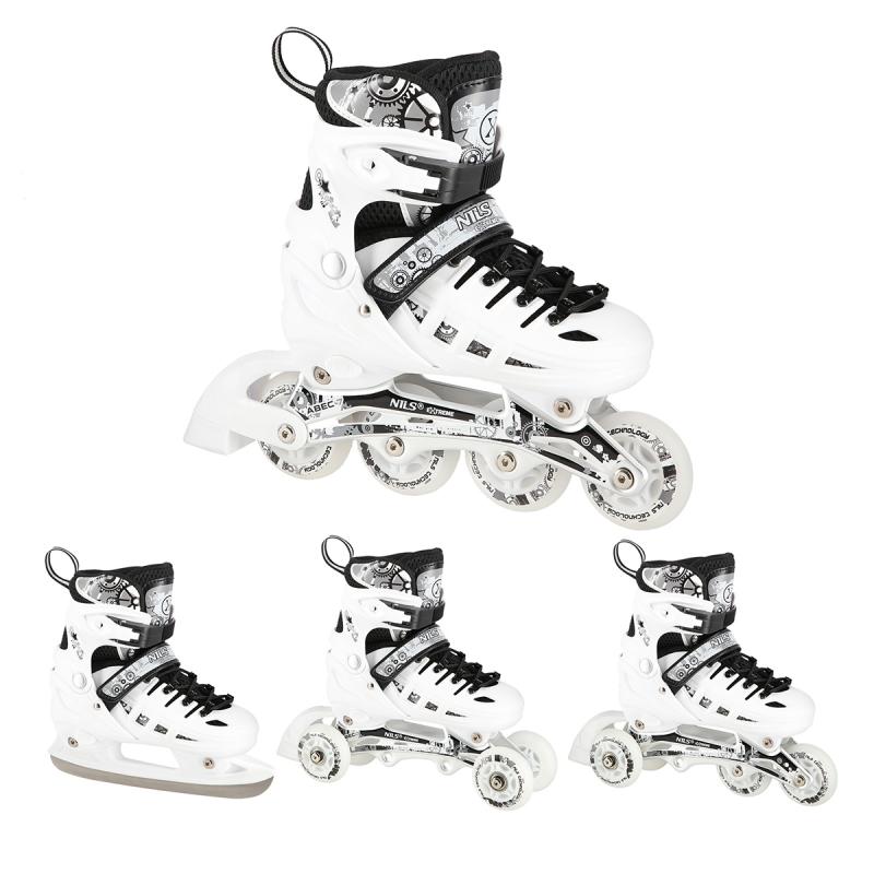 NH 10905 A NILS EXTREME je set kolečkových a zimních bruslí určený pro začínající a středně pokročilé uživatele. Jejich vysoká kvalita zaručuje dlouhou životnost a je jistou volbou na dlouhý čas. Model NH 10905 A byl také vybaven třístupňovým nastavením velikosti boty, kdy je možné ji nastavit dle potřeb uživatele. Je to způsob, jak ušetřit čas i peníze. Takové řešení prodlužuje jejich životnost a umožňuje, aby byly používány více než jednou osobou.