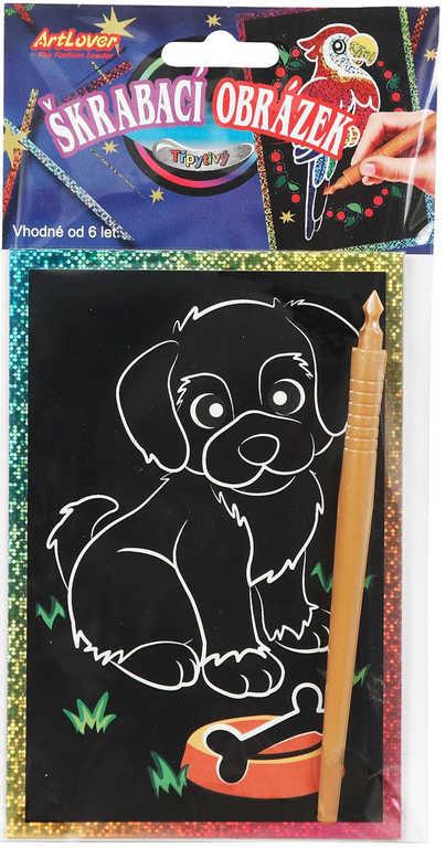 Obrázek škrabací třpytivý barevný 15x10cm hologramový set s nástrojem různé druhy