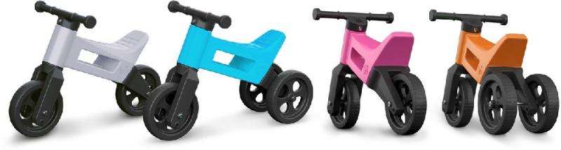 Děláte si starosti s tím, že budete dětem muset kupovat každý rok nové odrážedlo? S Funny Wheels tento problém řešit nemusíte. Nejmenší děti využijí tři kolečka, která zaručí perfektní stabilitu při jízdě i stání. Až vyrostou, můžete jim upravit sedačku do pohodlné polohy, aby měly dost prostoru pro odrážení. V další fázi můžete dvě zadní kolečka vyměnit za jediné a z vozítka Funny Wheels se rázem stane odrážecí kolo.