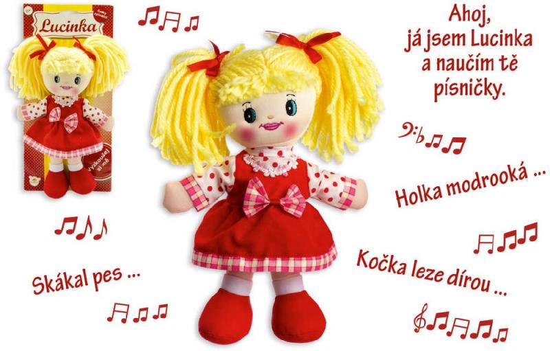 Lucinka je panenkou s měkkým tělíčkem. Je oblečena do šatiček laděných do červené barvy. Má blond vlásky vyčesané do dvou culíčků. Pokud jí děti zmáčknou bříško, začne říkat basničky, pohádky, písničky, a to plynule a srozumitelně. Děti mohou uslyšet například: Ahoj, já jsem Lucinka a naučím tě básničky / Skákal pes / Holka modrooká / Kočka leze dírou. Panenka vhodná pro nejmenší děti.
