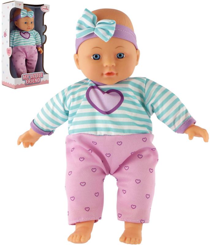 Roztomilá kloubová panenka batole s měkým tělíčkem v krásném oblečku i s čelenkou. Toto miminko udělá jistě radost každé holčičce a stane se tak její nepostradatelnou součástí. Baleno v openboxu.Panenky zaručeně potěší naprostou většinu mlých holčiček. Kterou holčičku by nebavila hra s panenkami? Převlékání, sehrávání scének nebo aranžování domečku pro panenky je přeci zábava! Panenka je dárek, který udělá radost každé malé slečně, princezně nebo mamince.