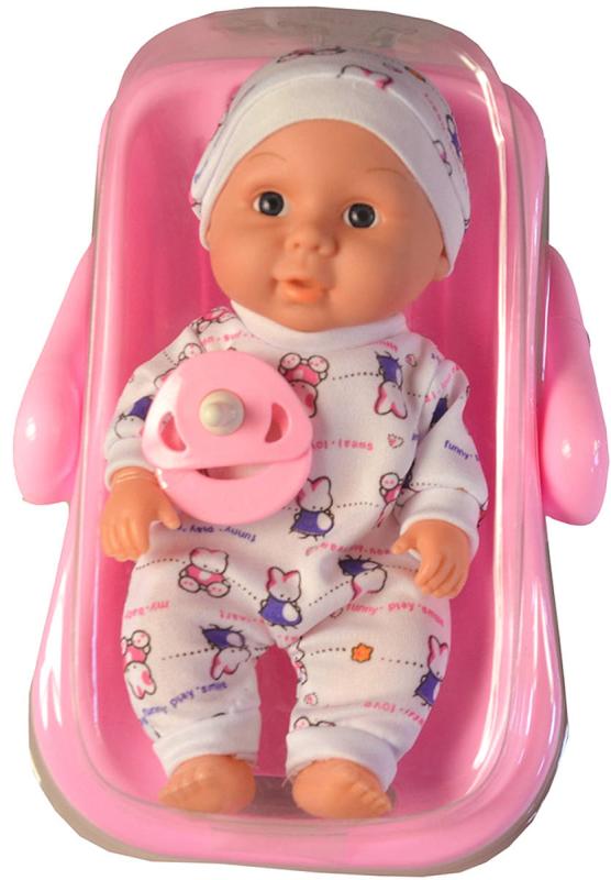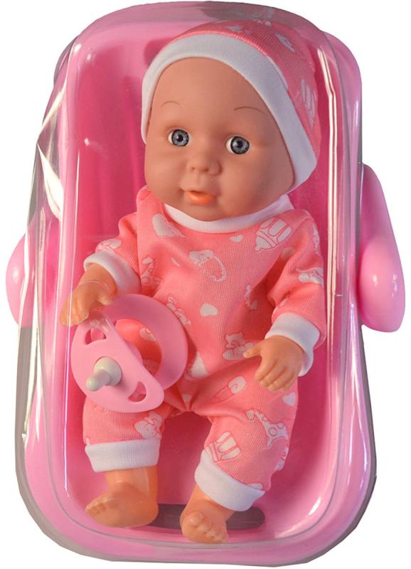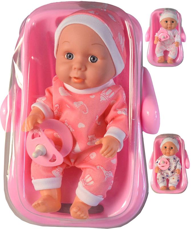 Obsah setu: nosič, panenka v oblečku, dudlík