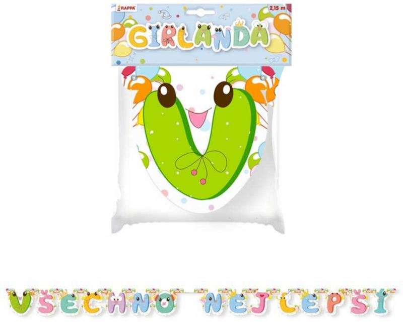 Super tip na oslavu - girlanda Všechno nejlepší! Stačí roztáhnout a pověsit. S touto parádní girlandou bude tvoje výzdoba na párty nepřehlédnutelná.Rozměry balení (š v h): 20 x 23,5 x 1cm