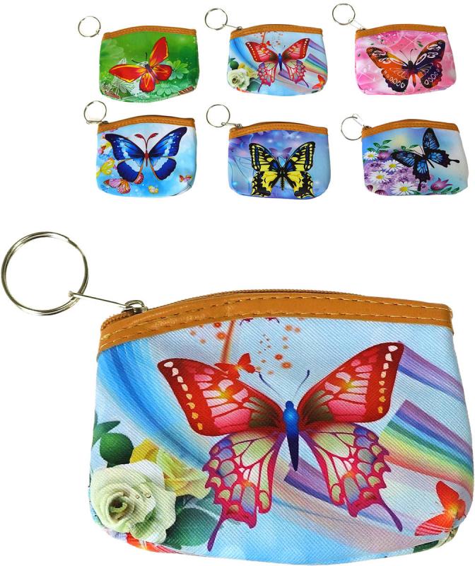 Malá, lehká peněženka pro děti, s veselým motivem s motýlky, pro všechny holky, které chtějí mít vždy při ruce hotovost pro své nákupy. Jedna kapsička se zapínáním na zip. Kovový kroužek pro snadné zavěšení. Praktický doplněk kabelky, batohu nebo školní tašky. 6 různých motivů s motýlky. Baleno v sáčku.Rozměry dětské hračky (š v): 11,5 x 9,5cm