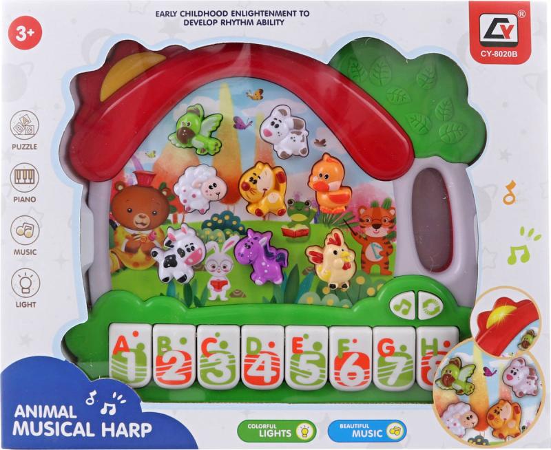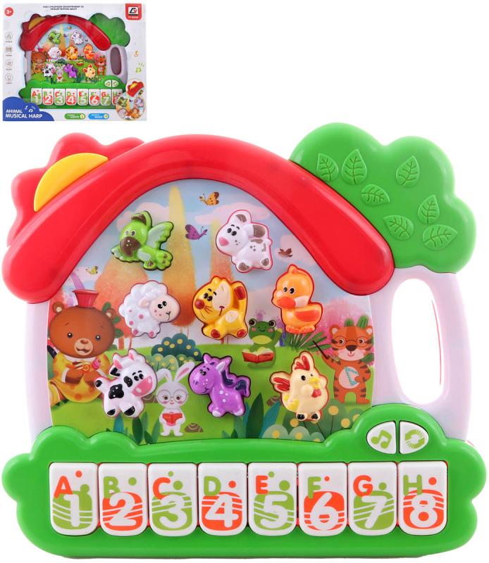 Interaktivní dětské piánko ve tvaru domečku se zvířátky je skvělou hračkou pro malé děti, které rády objevují zvuky a melodie. Piánko obsahuje tlačítka se zvuky zvířátek a také tlačítka s čísly, která pomáhají dětem hravou formou poznávat čísla a základní anglická slovíčka. Barevné provedení a jednoduché ovládání podporují rozvoj dětské fantazie, sluchového vnímání i jemné motoriky. Hračka je vyrobena z plastu a díky kompaktním rozměrům je vhodná pro hraní doma i na cestách.