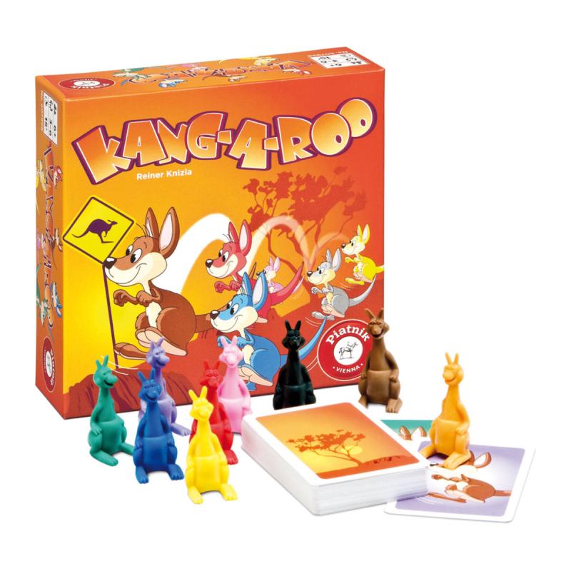 Společenská postřehová hra (postřehovka) KANG-A-ROO od Piatniku pro děti v češtině.Sbírej drzé boxující vačnatce! Pouze ten, kdo nakonec v australské savaně pochytal nejvíce klokanů, vyhrává. Ale pozor: pokud nemáš v rukou tu správnou kartu, mohou ti spoluhráči tvé klokany rychle vyfouknout přímo před nosem.Kangaroo je rychlá, snadná a zábavná hra vhodná pro hraní v rodině. Pravidla jsou poměrně triviální a děti od pěti let tuto hru zvládají velice dobře. Dospělí nemají žádnou věkovou výhodu, takže boj o vítězství je nelítostný :) Hráči zahráním karet chytají různobarevné klokany.více