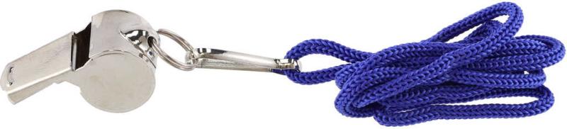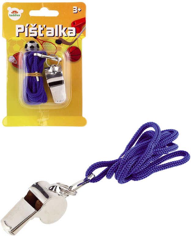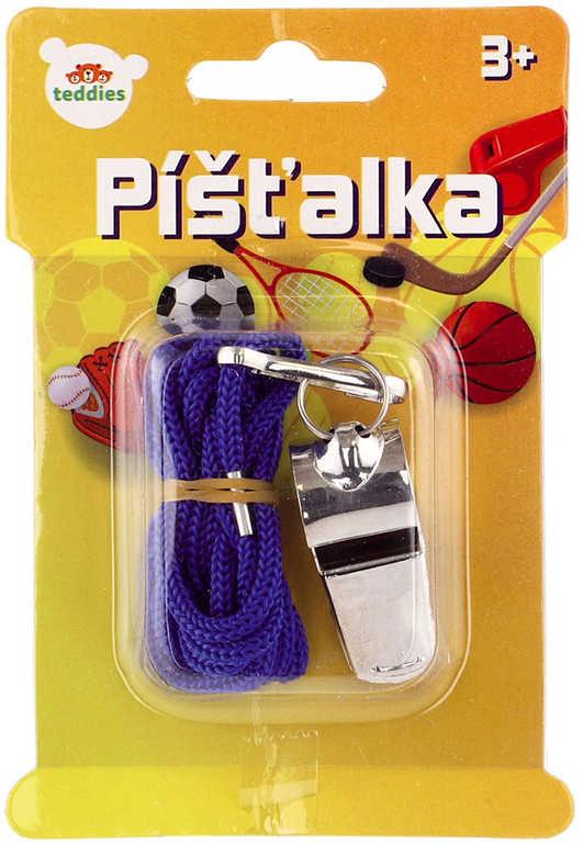 Píšťalka sportovní kovová se šňůrkou 5cm soudcovská na kartě