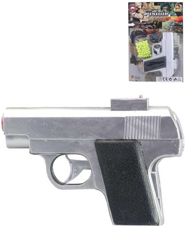 Pistole na kuličky stříbrná 13cm policejní kuličkovka set s náboji plast