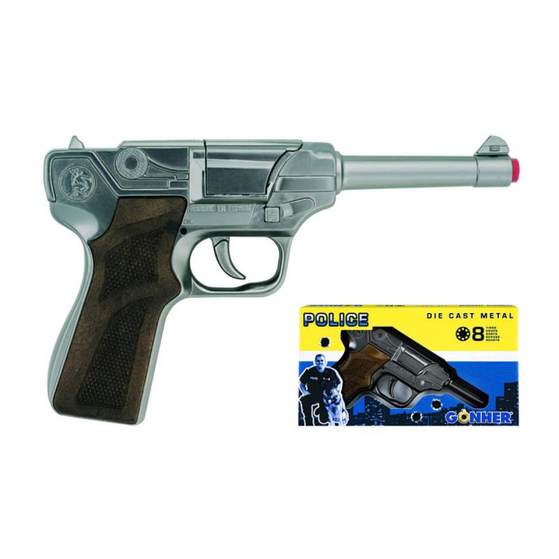 Pistole policejní stříbrná kovová na kapsle 8 ran