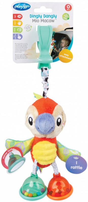 PLAYGRO PLYŠ Papoušek baby závěsný chrastící s klipem pro miminko