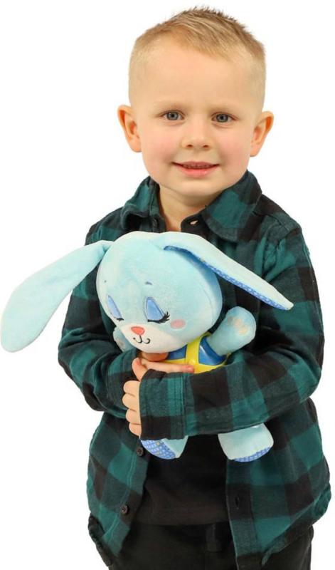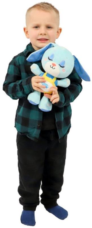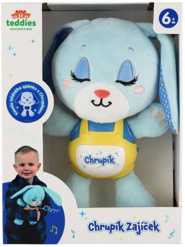 Zajíček Chrupík – kouzelný usínáček se světlem a zvuky pro klidné večery. Usínání bude odteď pro děti kouzelným zážitkem. Roztomilý Zajíček Chrupík kombinuje mazlivého plyšového kamaráda s uklidňujícím světlem a zvuky. Je ideálním společníkem pro večerní rituály a první samostatné usínání. Zajiček je vyroben z hebkého plyše a má plastový panel se světelnými a zvukovými efekty. Po stisknutí tlačítka zahraje jemnou melodii, která uklidní dítě a podbarví příjemnou atmosféru tlumeným světýlkem. Díky napájení na baterie lze hračku snadno používat kdekoliv – v postýlce, kočárku i na cestách.