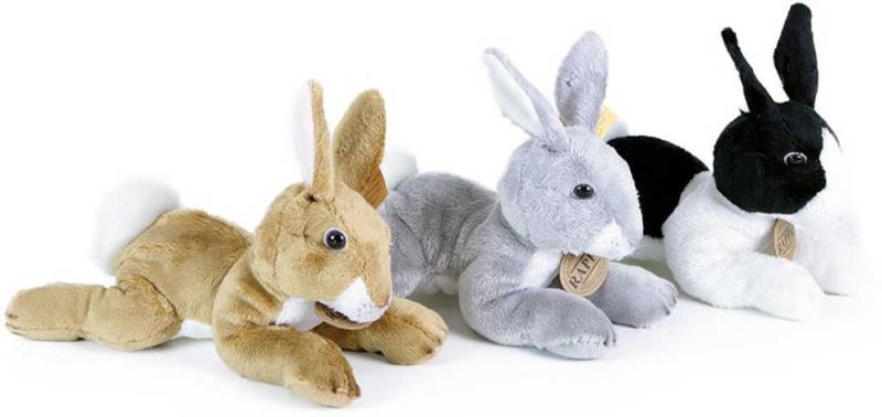 Heboučký, ležící králíček z plyše, ve třech barevných variantách, pro všechny milovníky plyšových zvířátek.