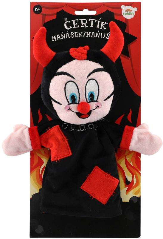 Plyšový textilní maňásek na ruku, veselý čertík, vhodný pro děti od narození. Velikost 30cm.S plyšovým maňáskem si můžete zahrát svou oblíbenou pohádku nebo vymyslet vlastní příběh. Maňásci zpestří zábavu pro děti a hlavně večerní usínání. Podání pohádky maňáskem je velmi efektivní. Maňásek je nejen skvělá pomůcka pro divadelní představení, ale i úžasná dekorace pro dětský pokojíček.