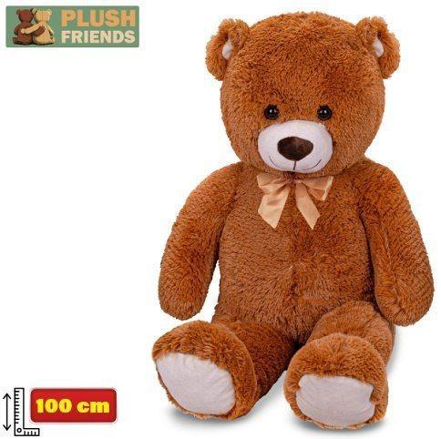 Plush Friends medvěd plyšový 100cm tmavě hnědý s mašlí