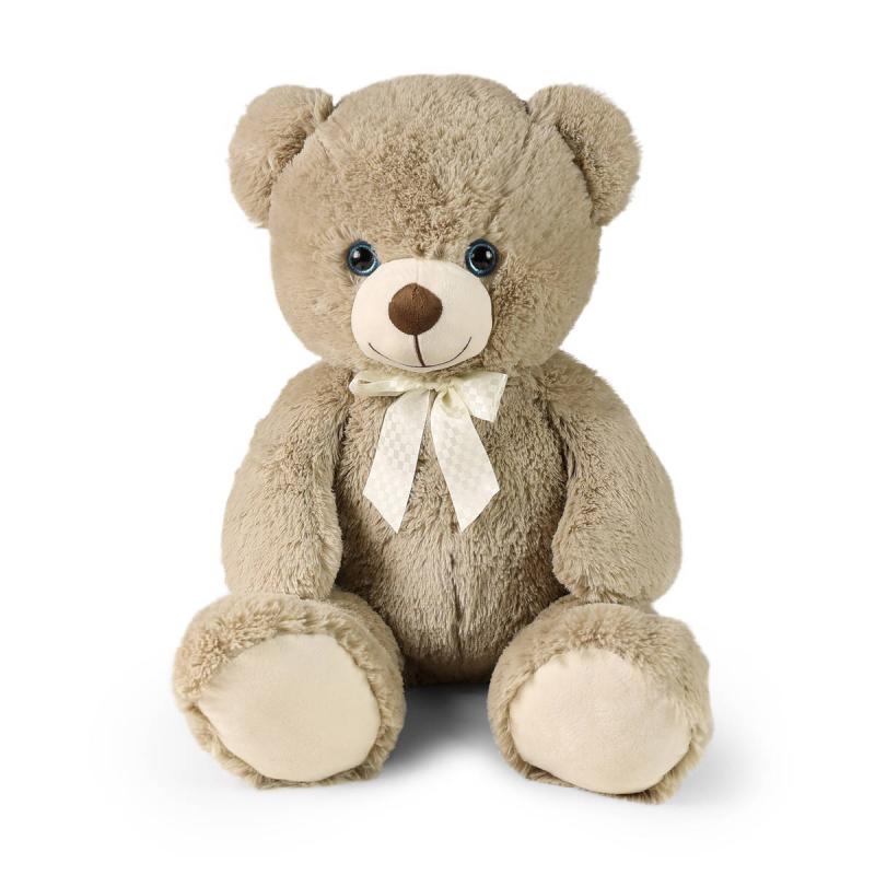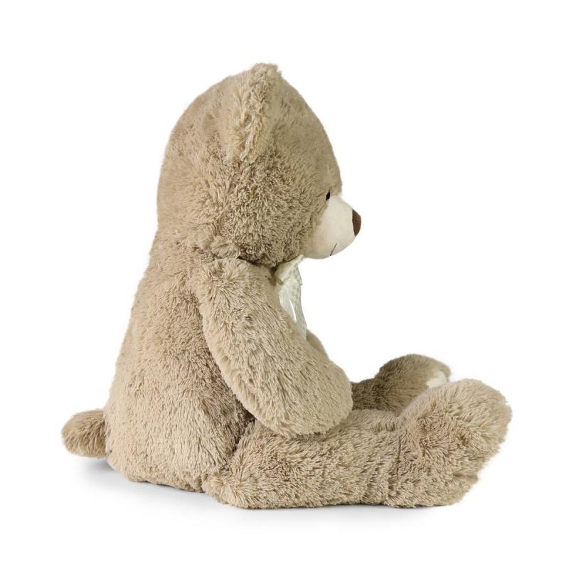 Medvěd ve velikosti 78 cm je vyroben z kvalitní heboučké plyše, má kapučínovou barvu a krk mu zdobí krémově bílá saténová mašle. Tento plyšový kousek je ideálním dárkem pro malé i velké!