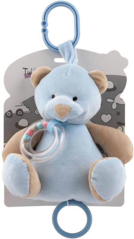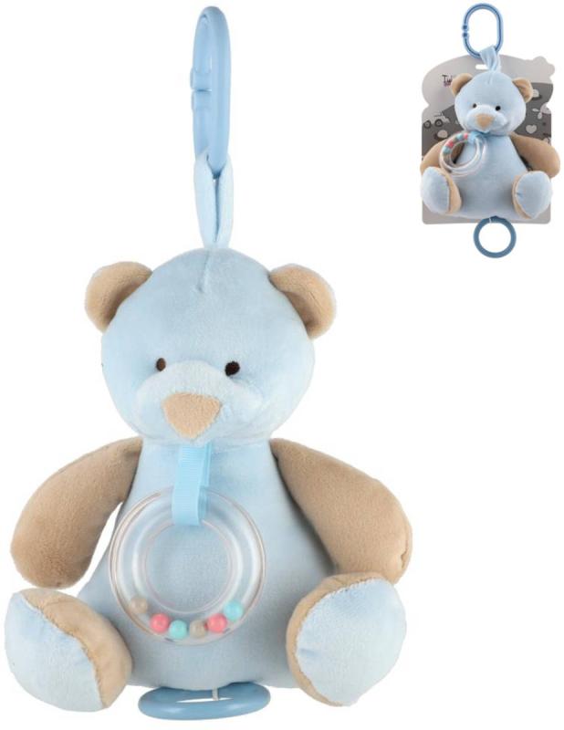 PLYŠ Medvídek baby natahovací zvířátko usínáček s chrastítkem pro miminko