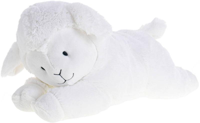 Plyšová ovečka ležící je velká 28cm, bílá s uklidňujícím úsměvem. Tato ovečka jistě dodá vašemu dítěti pocit štěstí a klidu díky svému řemeslnému zpracování a vzhledu. Vyrobeno z kvalitního měkkého plyšového materiálu.