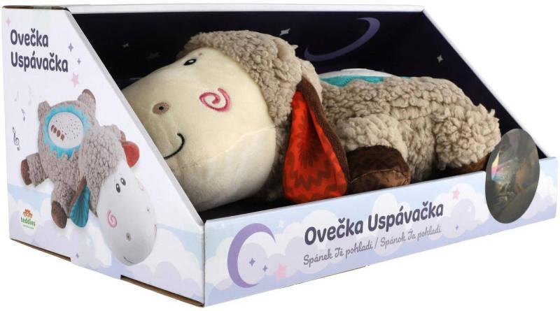 PLYŠ Ovečka baby usínáček projektor na baterie pro miminko Světlo Zvuk