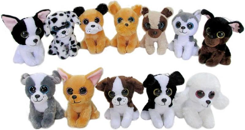 PLYŠ Pejsek 15cm velké oči na baterie Zvuk 12 druhů (plyšová hračka)