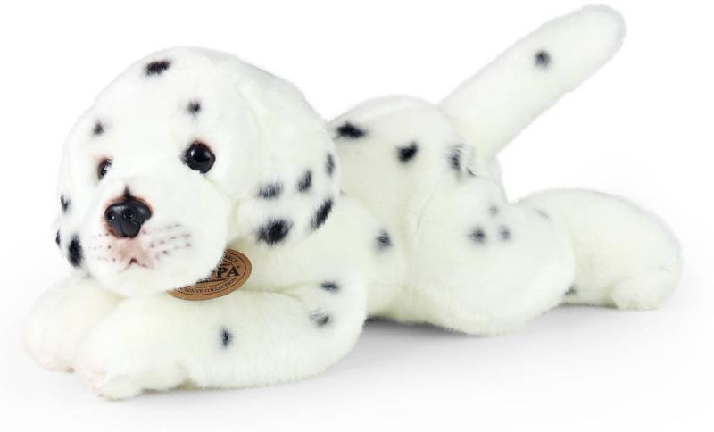 Ležící pejsek štěňátko dalmatina, zvířátko štěně z kvalitní plyše, psík pro všechny milovníky plyšových zvířátek.Tato hračka spadá do exkluzivní kolekce plyšových hraček. Od opičáka, přes papouška až po klasické pejsky a naježené kočky … produkty této kolekce jsou vyrobeny z velmi kvalitní