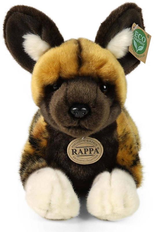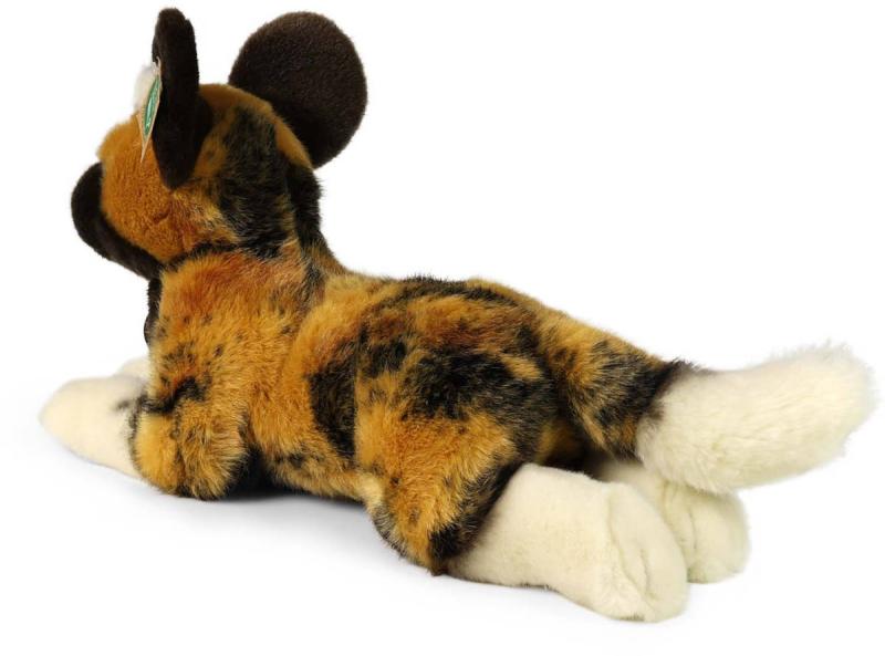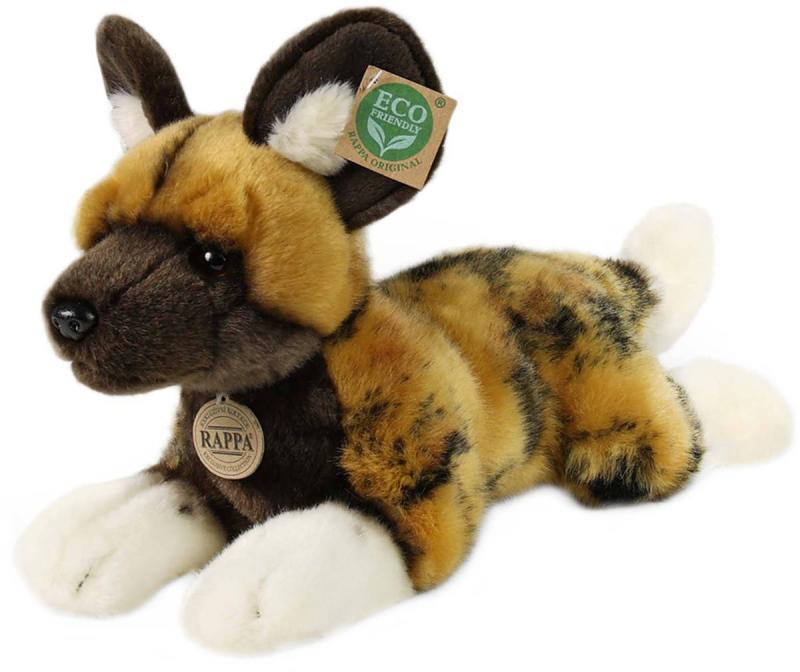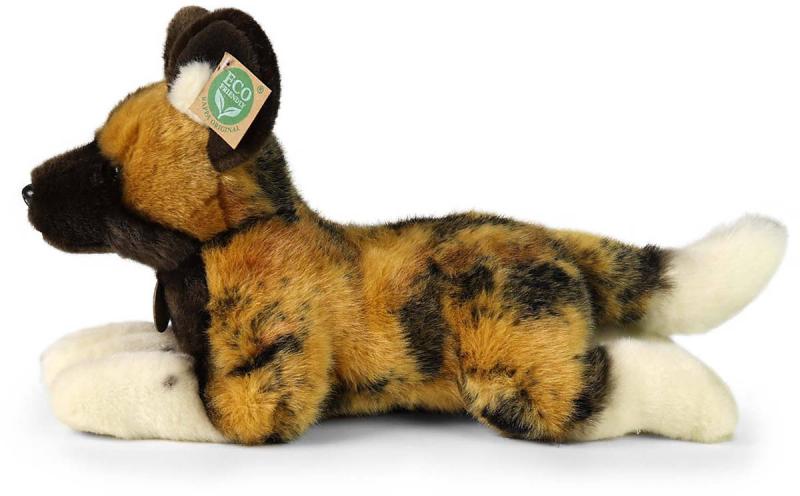 Plyšové zvířátko, plyšák ležící divoký hyenovitý pes, kvalitní plyš, realistické provedení, exkluzivní kolekce, Eko výrobek, velikost 28cm.ECO-FRIENDLY výrobek - výplň plyšové hračky je vyrobena z recyklovaných PET lahví. Tento materiál je zcela bezpečný, na omak nerozeznatelný od standartní výplně a plně atestovaný pro bezpečnost i