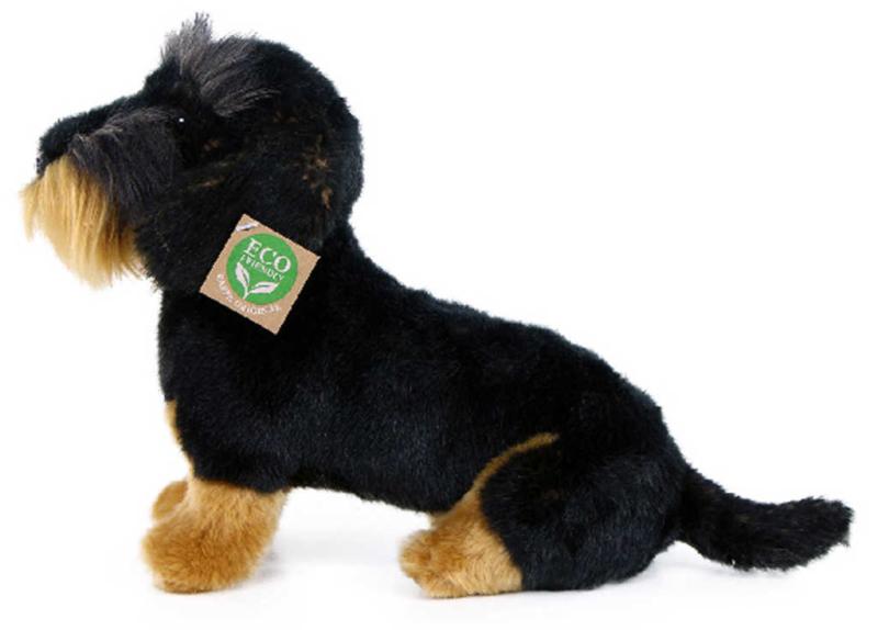Roztomilý černohnědý psík jezevčík drsnosrstý z velmi kvalitní plyše, s ekologickou výplní, pro všechny milovníky plyšových zvířátek.ECO-FRIENDLY výrobek - výplň plyšové hračky je vyrobena z recyklovaných PET lahví. Tento materiál je zcela bezpečný, na omak nerozeznatelný od standartní výplně a plně atestovaný pro