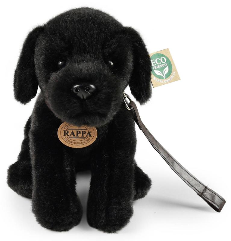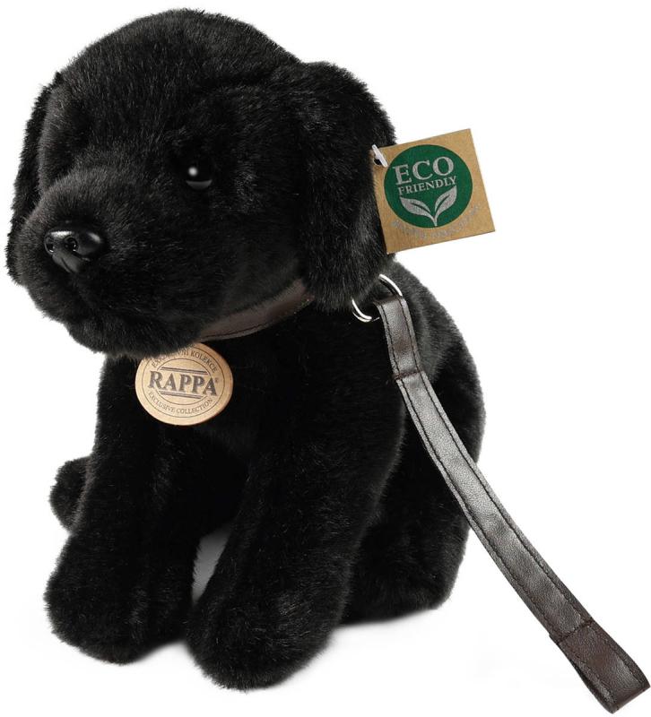 Plyšové zvířátko, plyšák pes černý labrador, sedící pejsek, na vodítku, kvalitní plyš, realistické provedení, exkluzivní kolekce, Eko výrobek, velikost 25cm.ECO-FRIENDLY výrobek - výplň plyšové hračky je vyrobena z recyklovaných PET lahví. Tento materiál je zcela bezpečný, na omak nerozeznatelný od standartní výplně a plně atestovaný pro bezpečnost i