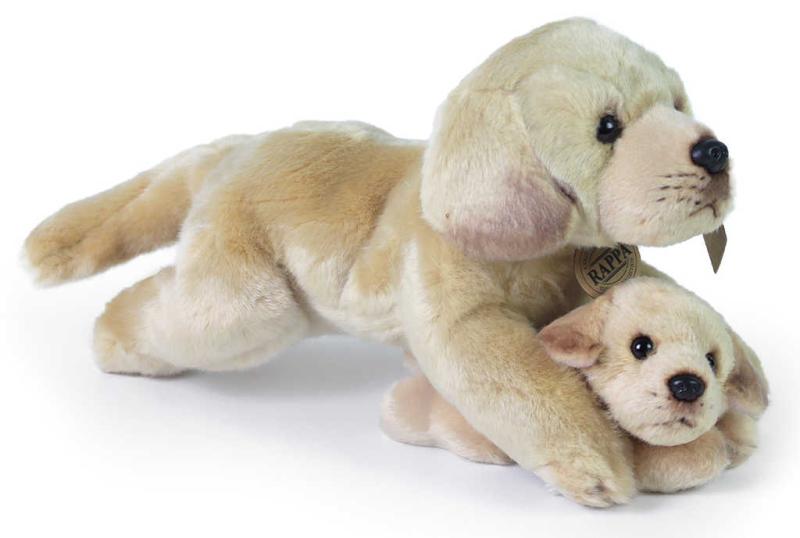 Roztomilý ležící psík světlý labrador + štěně z plyše, pro všechny milovníky plyšových zvířátek.Tato hračka spadá do exkluzivní kolekce plyšových hraček. Od opičáka, přes papouška až po klasické pejsky a naježené kočky … produkty této kolekce jsou vyrobeny z velmi kvalitní