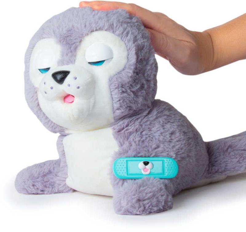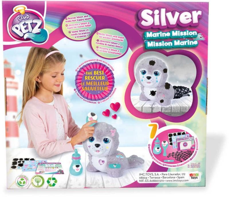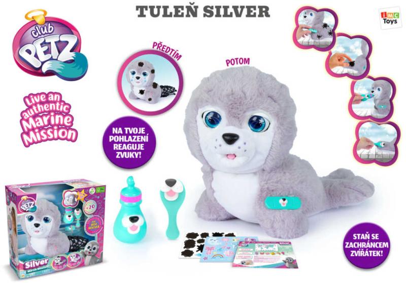Interaktivní plyšový tuleň Silver potřebuje tvoji pomoc, staneš se tou nejlepší záchranářkou? Nejdříve Silver umyj a očisti a pak jí zalep ránu. Když ji ještě nakrmíš pomocí lahvičky a učešeš hřebínkem, bude opět šťastná! Pohlaď ji po hlavě a bude slastně mhouřit oči. Tvou péči Silver odmění více než 20 reakcemi. Hračka na baterie, se zvukem.
