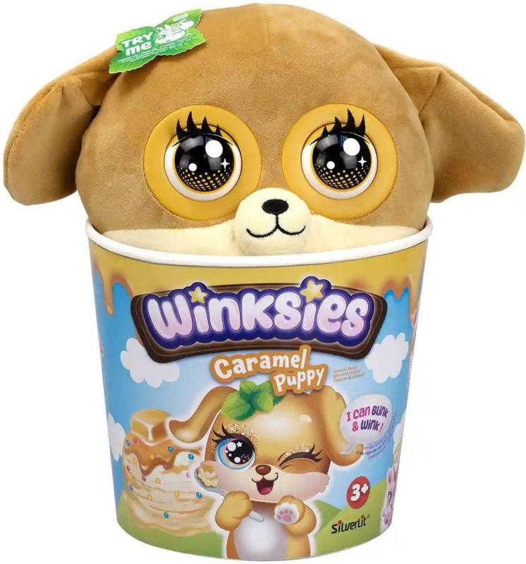 Interaktivní zvířátko plyšový mazlíček Winksies Caramel Puppy ve zmrzlinovém kelímku. Reaguje na doteky - mrká očima. Pejsek na baterie, se zvukem.Winksies je plyšová hračka s interaktivními funkcemi. Objímejte je nebo pohlaďte Winksies po hlavě a jejich oči budou mrkat jako opravdové! Winksies jsou veselí mazlíčci - zvířátka která vydávají různé zvukové efekty a melodie. Jemně pohlaďte hračku po hlavičce a její oči zamrkají. Vložte Winksies do tematického kelímku na zmrzlinu, aby hračka vypadala legračně a roztomile.