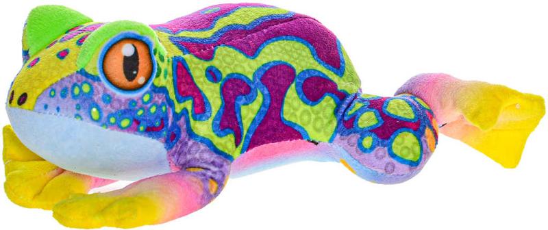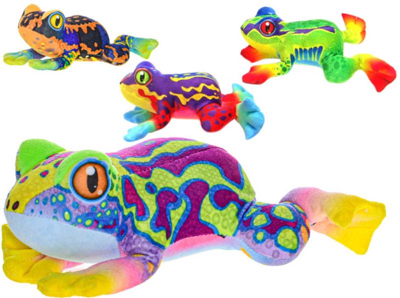 Pestrobarevná, duhová žabka z jemné plyše, žabička ve čtyřech barevných kombinacích. Hračka na baterie, se zvukem (kvákání).Plyšová hračka je vhodná jako dárek pro všechny děti. Plyšák vždy potěší. Plyšáci jsou vhodným mazlíčkem nejen do postýlky. Slouží dětem k mazlení, ale děti si s nimi také vytváří dekoraci svého dětského království. Hračky z plyše jsou vhodné pro děti všech věkových kategorií, ale jsou oblíbené i u dospělých.